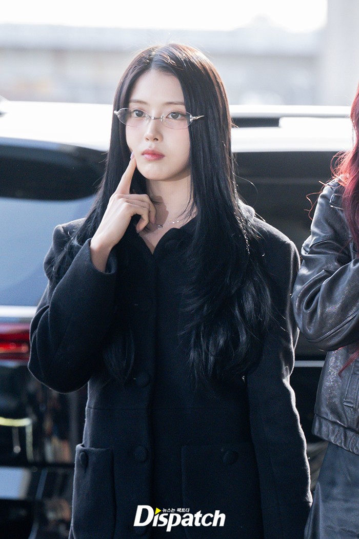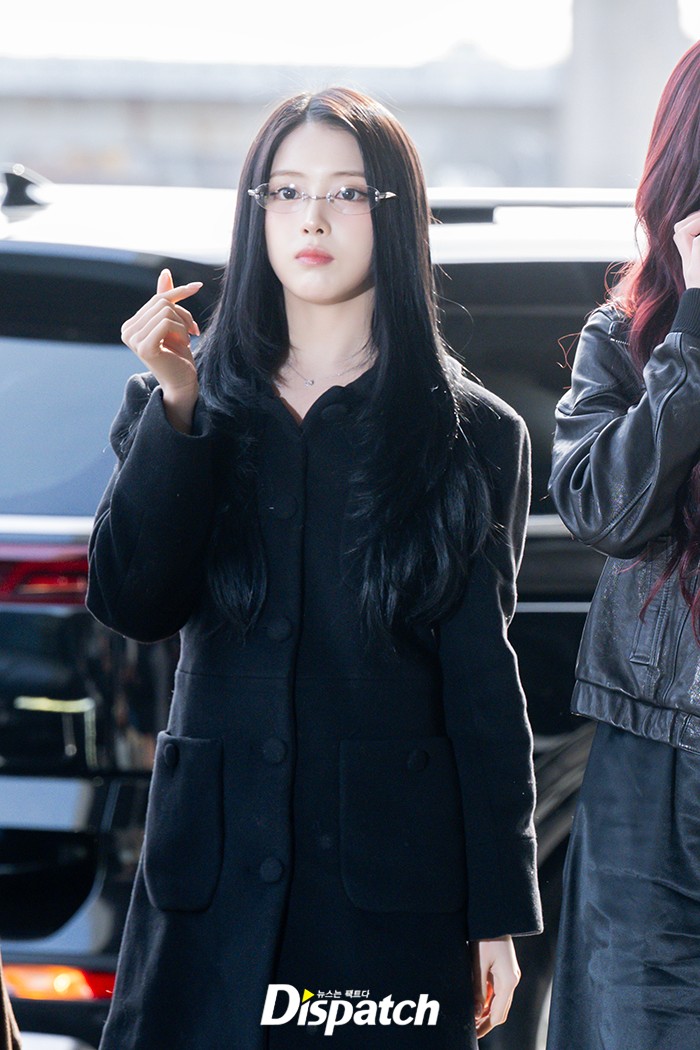 지우는 블랙 롱코트와 안경으로 멋을 냈다. 인형같은 미모가 시선을 사로잡았다.