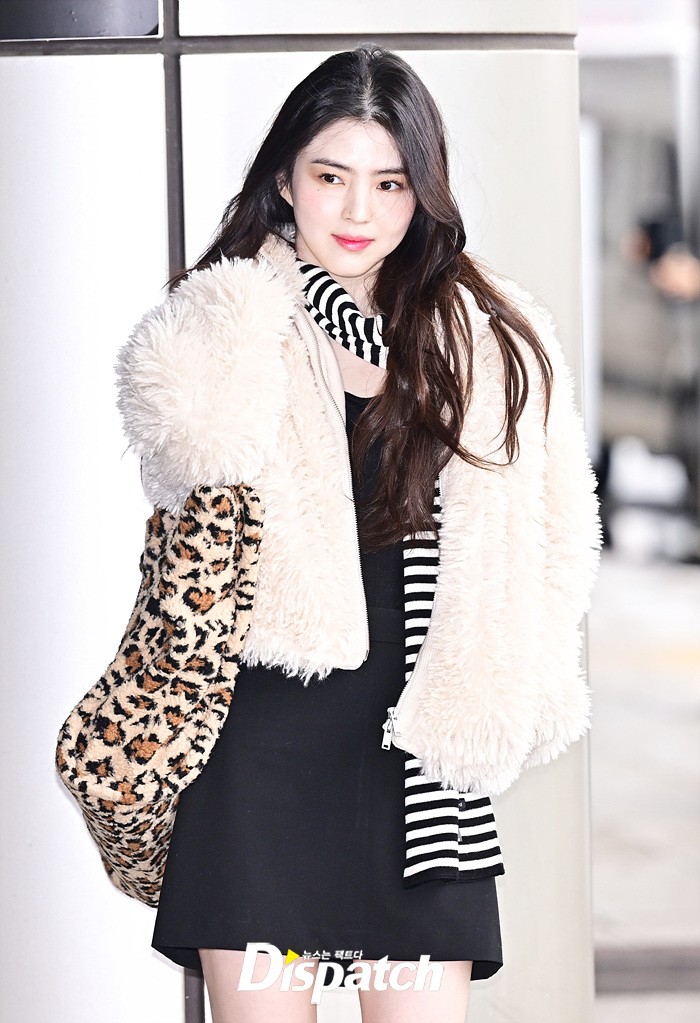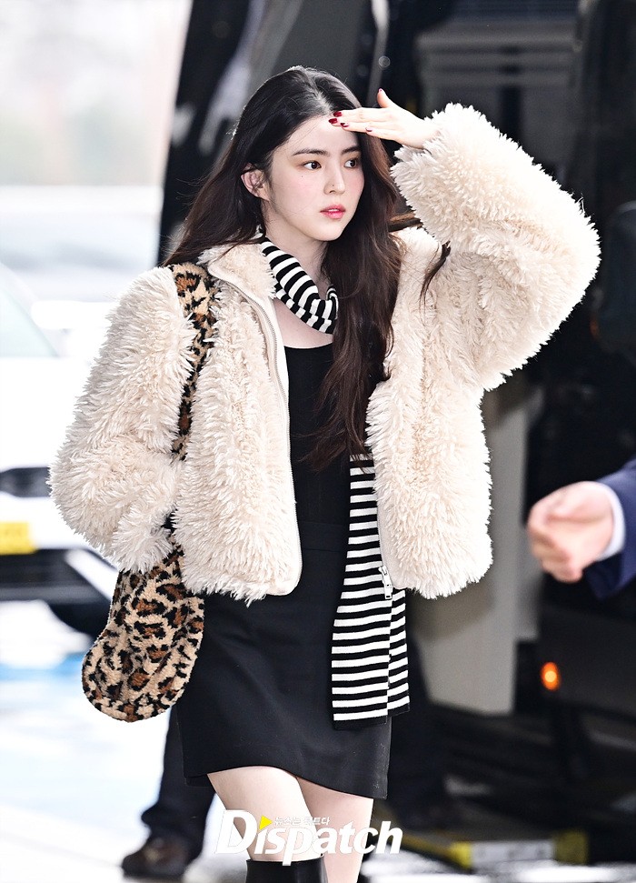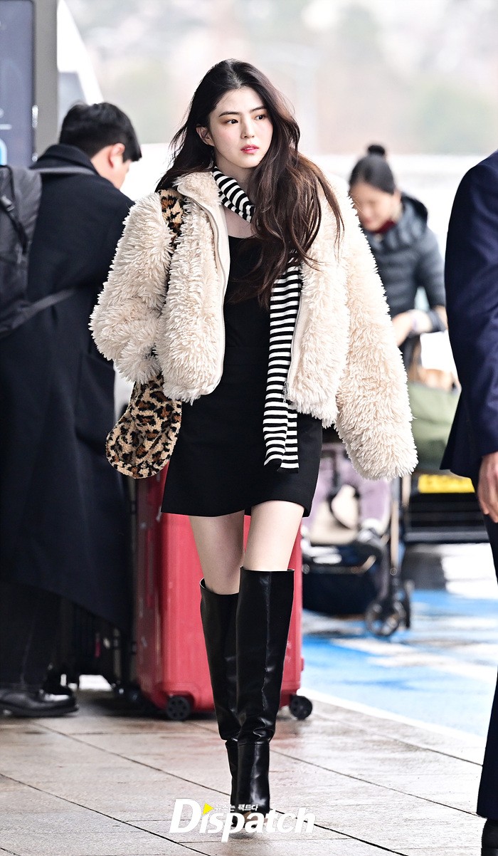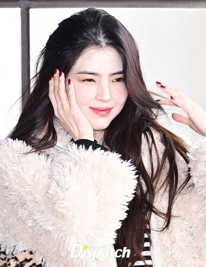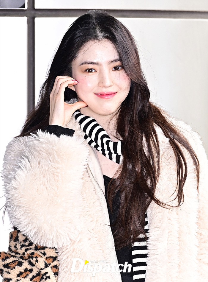한소희는 퍼 재킷과 미니 스커트, 부츠로 한겨울 패션의 정석을 선보였다. 청순한 비주얼과 러블리한 미소가 돋보였다.