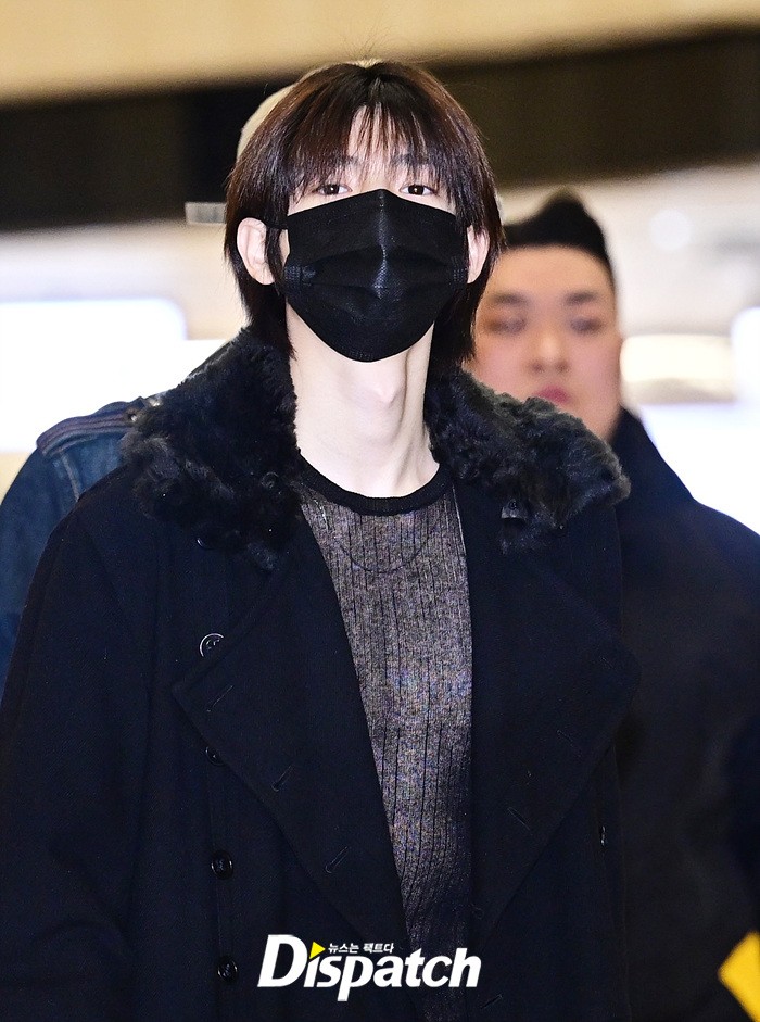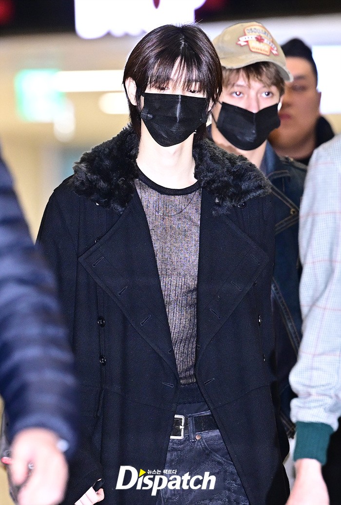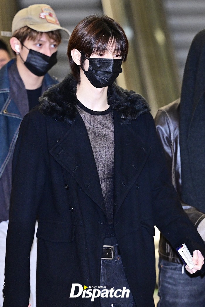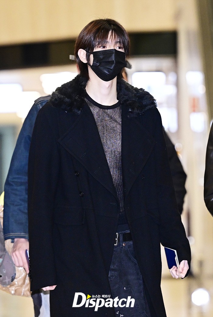 주훈은 블랙 컬러의 코트와 데님진으로 캐주얼한 공항패션을 완성했다. 마스크에도 훈훈한 비주얼이 시선을 모았다.