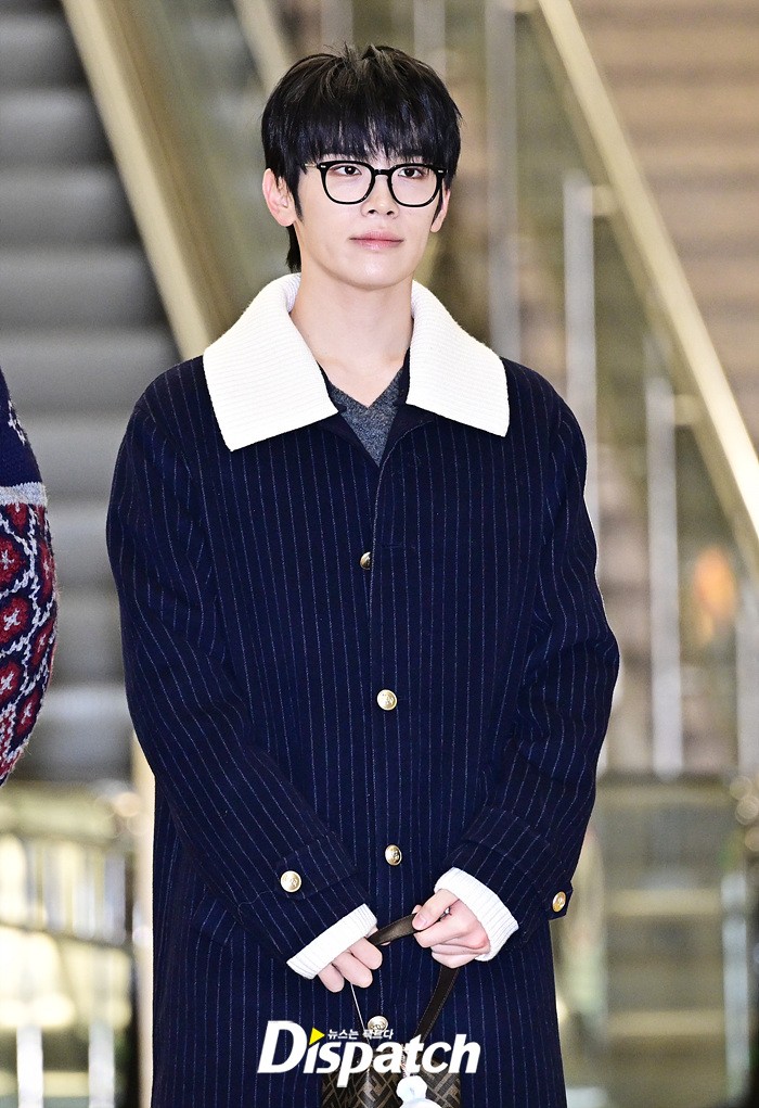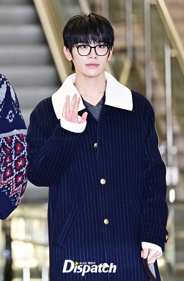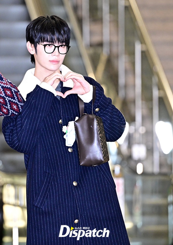 김태래는 안경 아이템을 이용해 지적인 이미지를 완성했다. 공항에 모인 팬들을 위해 환한 미소로 화답했다.