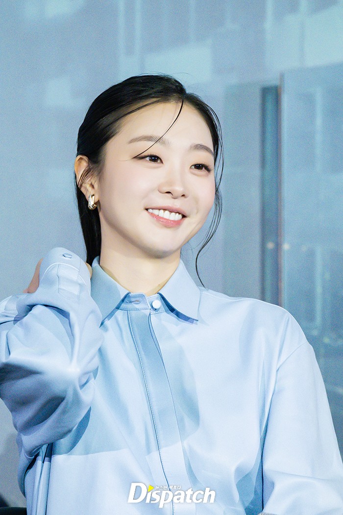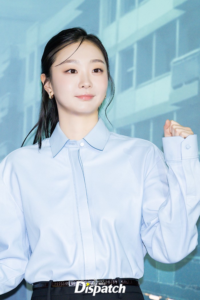 김다미는 블루 셔츠와 블랙 팬츠로 멋을 냈다. 아름다운 미모가 시선을 사로잡았다.
