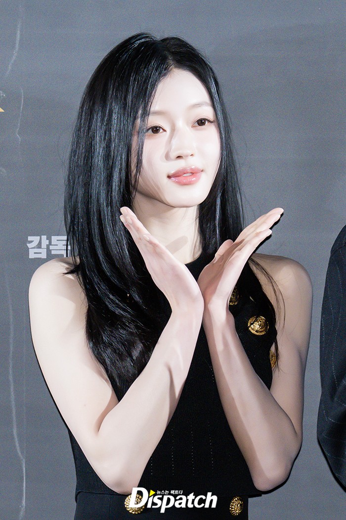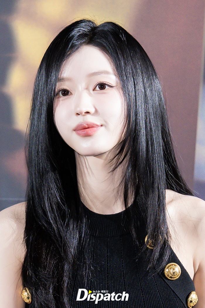 유아는 올블랙룩으로 시크한 분위기를 완성했다. 인형같은 미모가 시선을 사로잡았다.