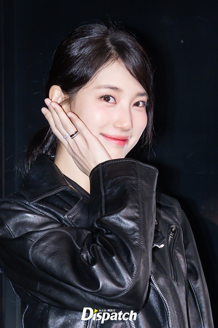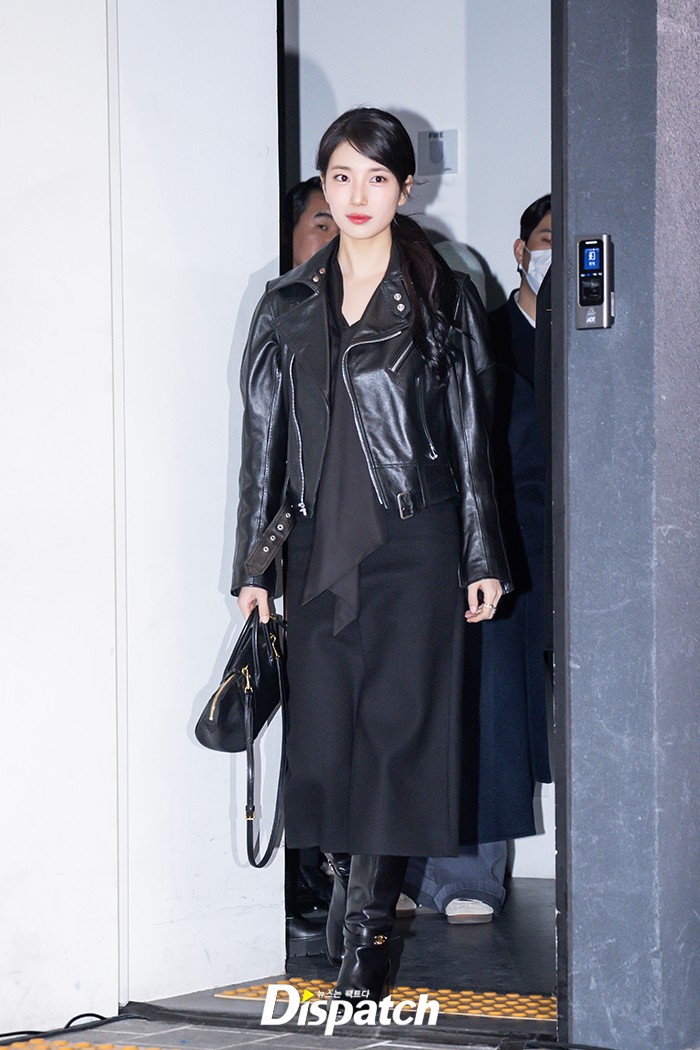수지는 올블랙룩으로 시크한 분위기를 연출했다. 아름다운 미모가 시선을 사로잡았다.
