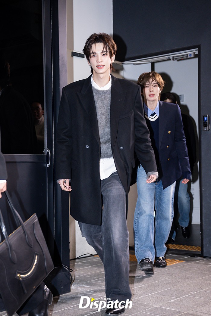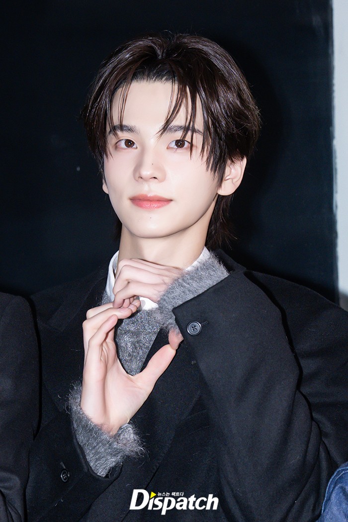 신유는 블랙 코트로 멋을 냈다. 잘생긴 비주얼이 돋보였다.
