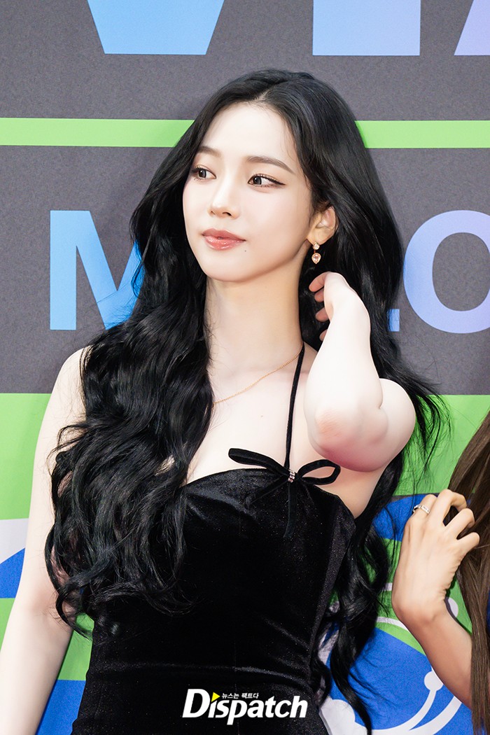 '에스파' 카리나는 블랙 홀터넥 드레스로 멋을 냈다. 아름다운 미모가 시선을 사로잡았다.