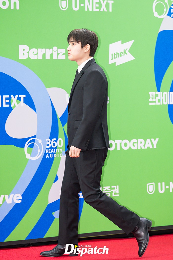 '엑소' 도경수는 블랙 수트로 멋을 냈다. 잘생긴 비주얼이 시선을 사로잡았다.