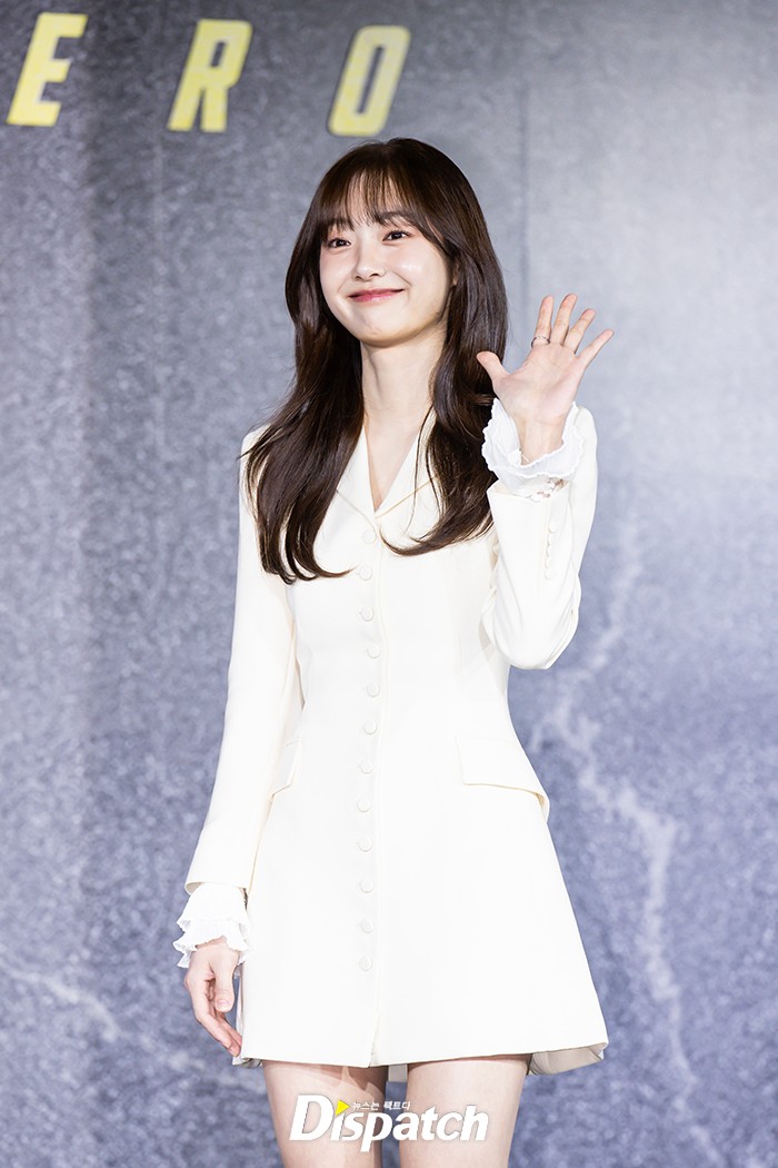 김혜준은 올화이트 원피스로 청순미를 뽐냈다. 사랑스러운 애교가 시선을 사로잡았다.