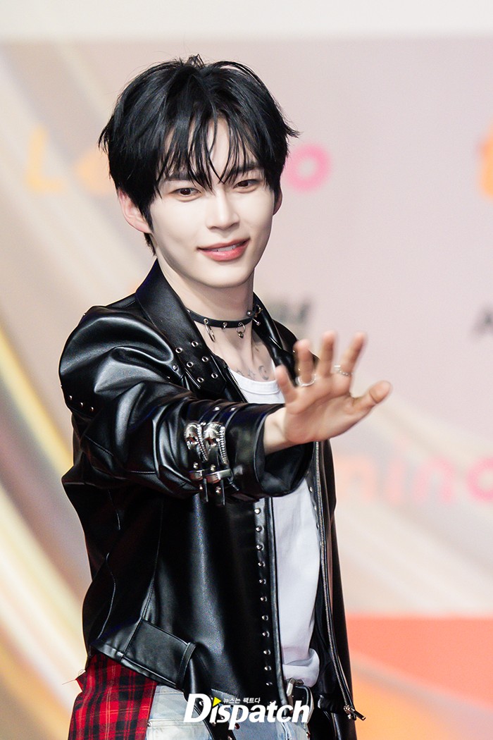 '제로베이스원' 성한빈은 가죽 재킷으로 펑키한 분위기를 완성했다. 잘생긴 비주얼이 돋보였다.