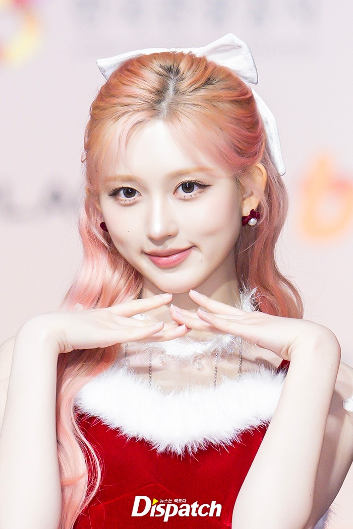 '아이브'는 크리스마스 의상으로 멋을 냈다. 가을은 아름다운 미모로 시선을 사로잡았다.