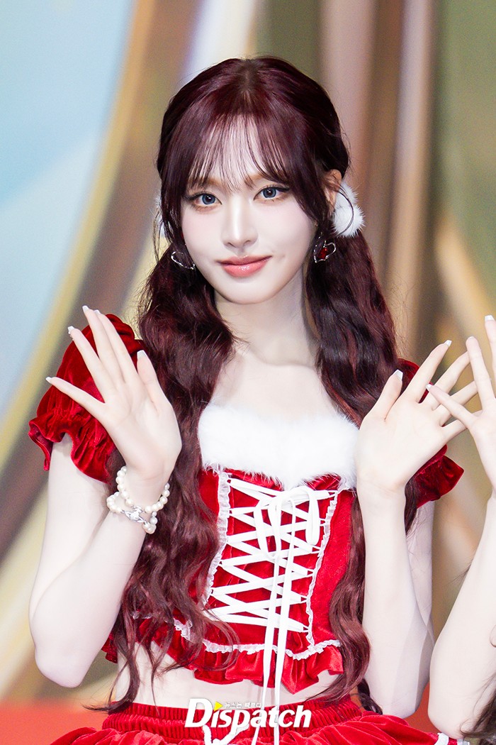 '아이브'는 크리스마스 의상으로 멋을 냈다. 리즈는 아름다운 미모로 시선을 사로잡았다.