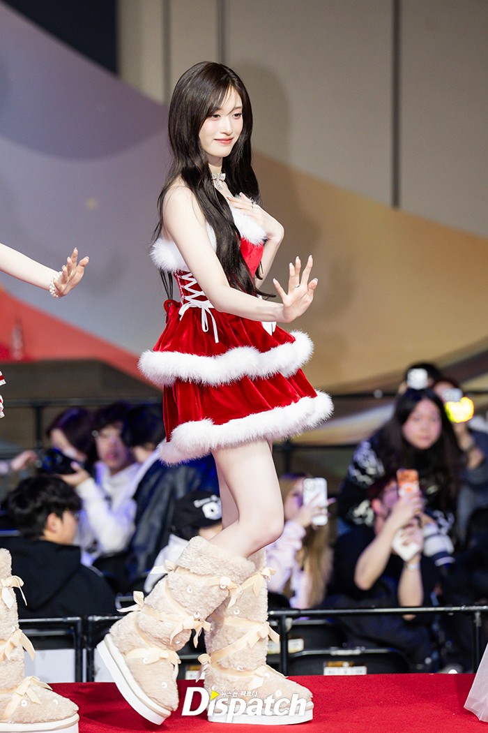 '아이브'는 크리스마스 의상으로 멋을 냈다. 이서는 아름다운 미모로 시선을 사로잡았다.