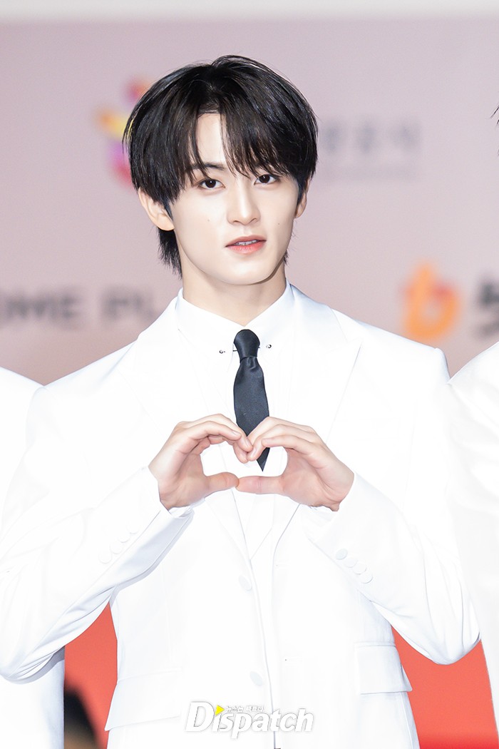 '스트레이 키즈'는 화이트 의상으로 멋을 냈다. 아이엔은 잘생긴 비주얼로 시선을 사로잡았다.