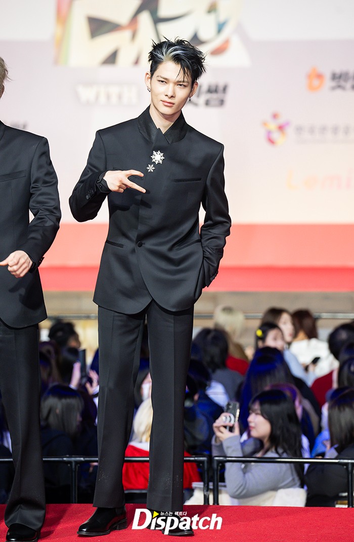 '엔하이픈' 니키은 블랙 수트로 멋을 냈다. 잘생긴 비주얼이 시선을 사로잡았다.