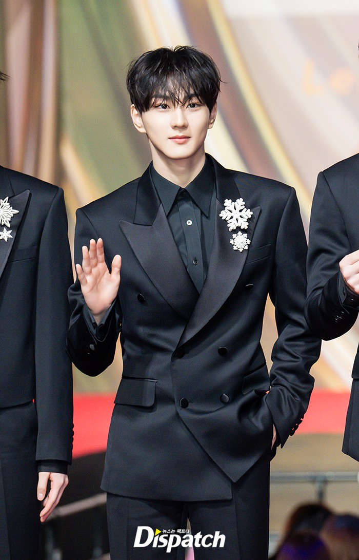 '엔하이픈' 정원은 블랙 수트로 멋을 냈다. 잘생긴 비주얼이 시선을 사로잡았다.