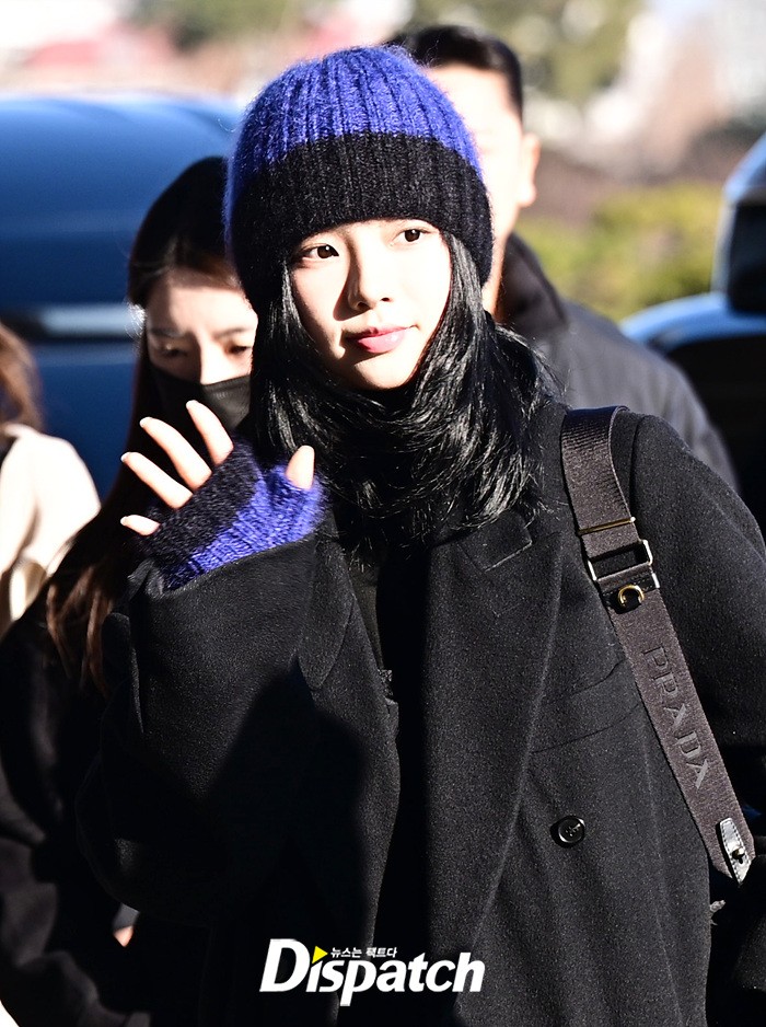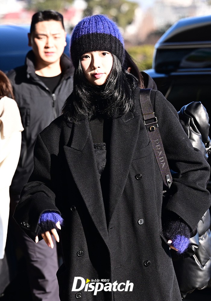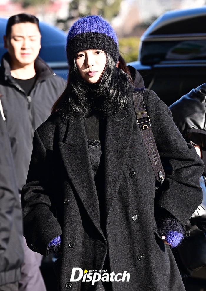 카리나는 비현실적인 미모로 시선을 모았다. 블랙 컬러의 코트와 털모자로 연출한 센스있는 스타일링도 돋보였다.