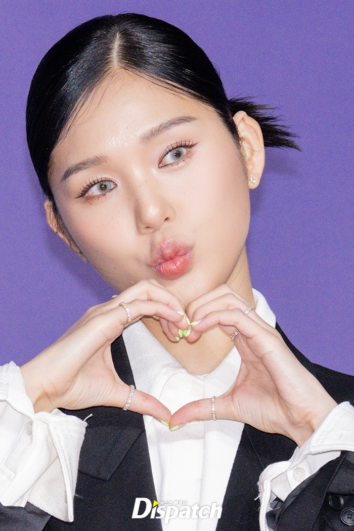 '오마이걸' 미미는 블랙&화이트룩으로 매니시룩을 선보였다. 인형같은 미모가 시선을 사로잡았다.