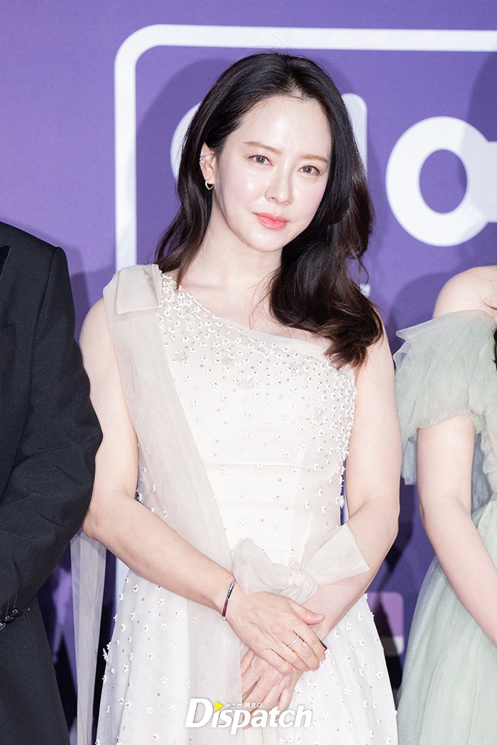 송지효는 옆트임 드레스로 섹시한 각선미를 드러냈다.