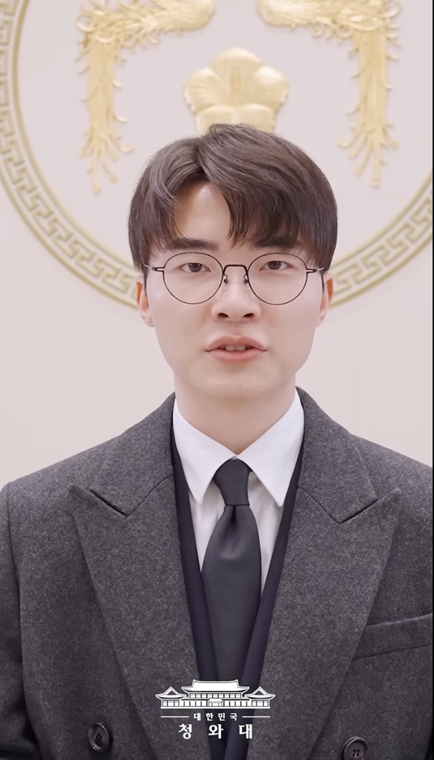 페이커는 2일 청와대 영빈관에서 열린 신년 인사회에서 이재명 대통령으로부터 체육훈장 중 가장 높은 등급인 청룡장을 받았다.