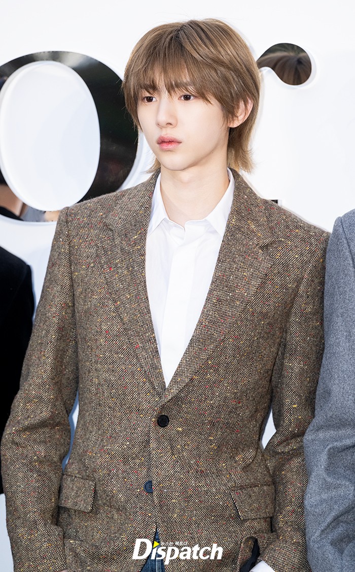 주훈은 브라운 자켓과 청바지로 멋을 냈다. 미소년 비주얼로 여심을 사로잡았다.