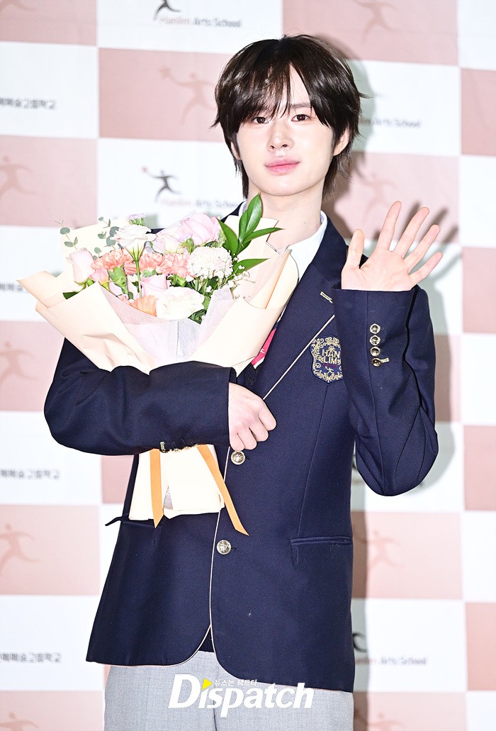 [Dispatch=이호준기자] '투어스' 경민이 8일 오전 서울 송파구 장지동 한림연예예술고등학교에서 열린 졸업식에 참석했다