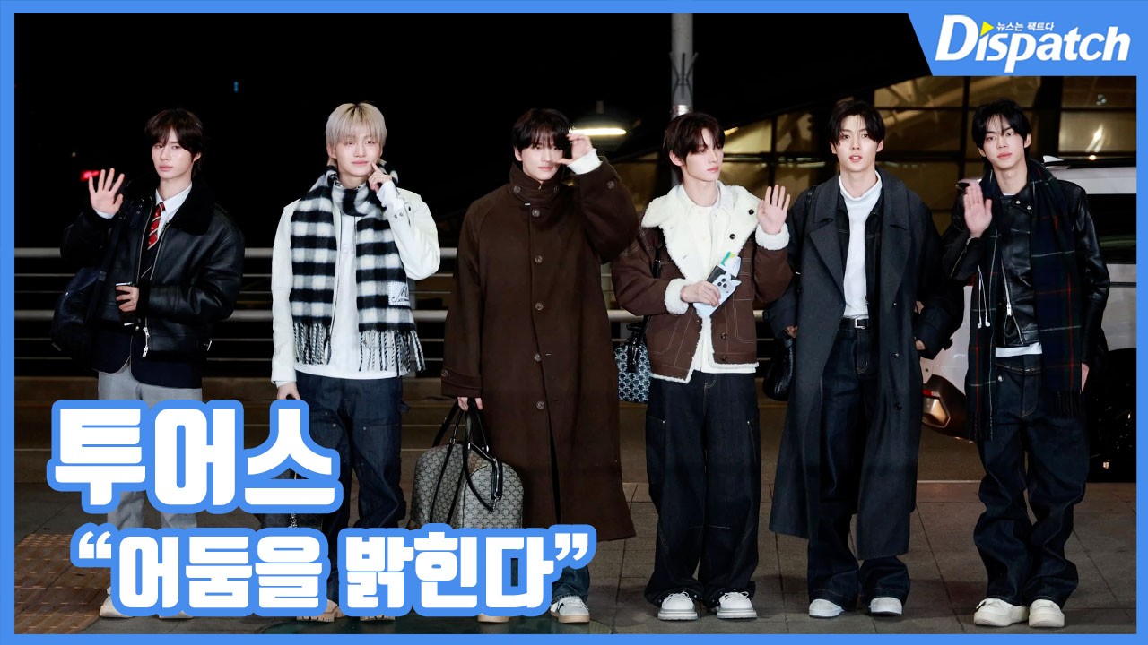 투어스(TWS)가 어둠 속에서도 눈부신 비주얼로 공항을 환하게 밝혔다.
