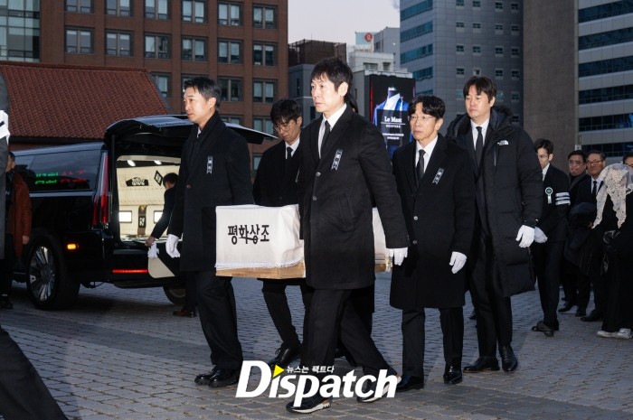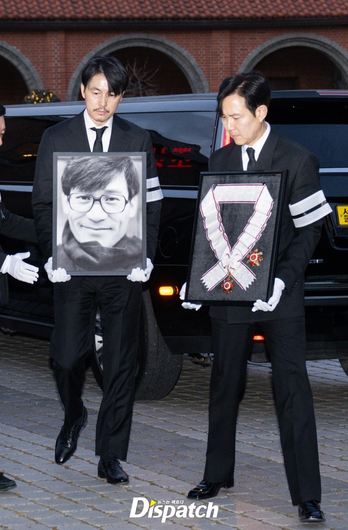 영정은 정우성이, 고인의 금관문화훈장은 이정재가 맡았다. 운구는 설경구, 유지태, 박철민, 박해일, 조우진, 주지훈 등 후배들이 담당했다.