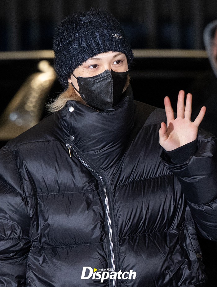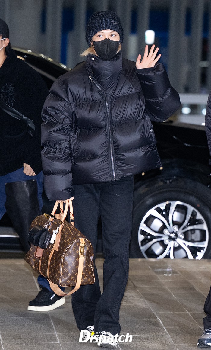 필릭스는 올블랙 의상으로 시크한 멋을 냈다. 비니와 빅백으로 스타일을 완성했다.