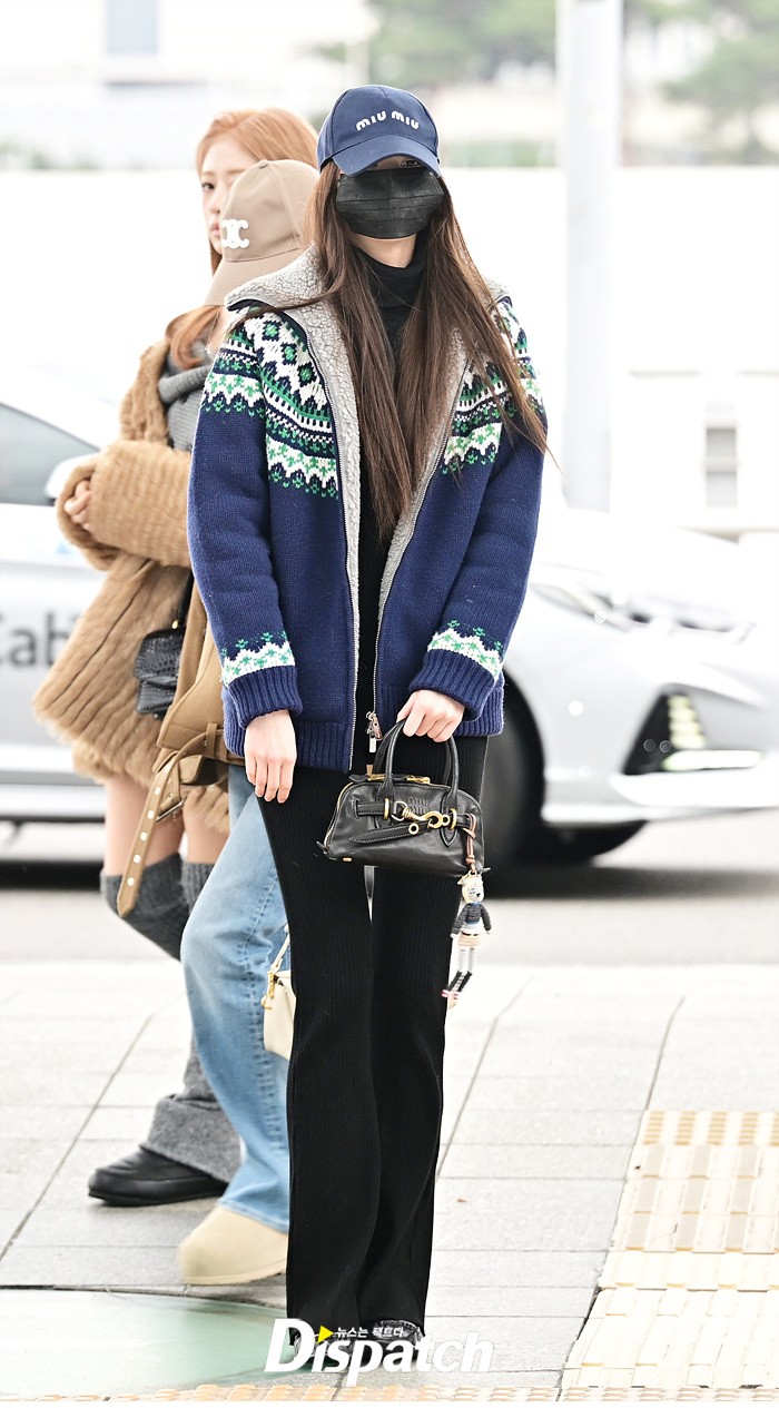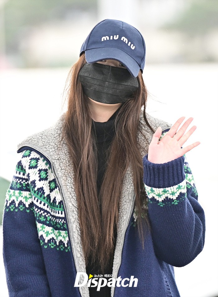 장원영은 모자와 마스크에도 완벽한 피지컬로 눈길을 끌었다. 공항에 모인 팬들을 위해 환한 손인사로 화답했다.