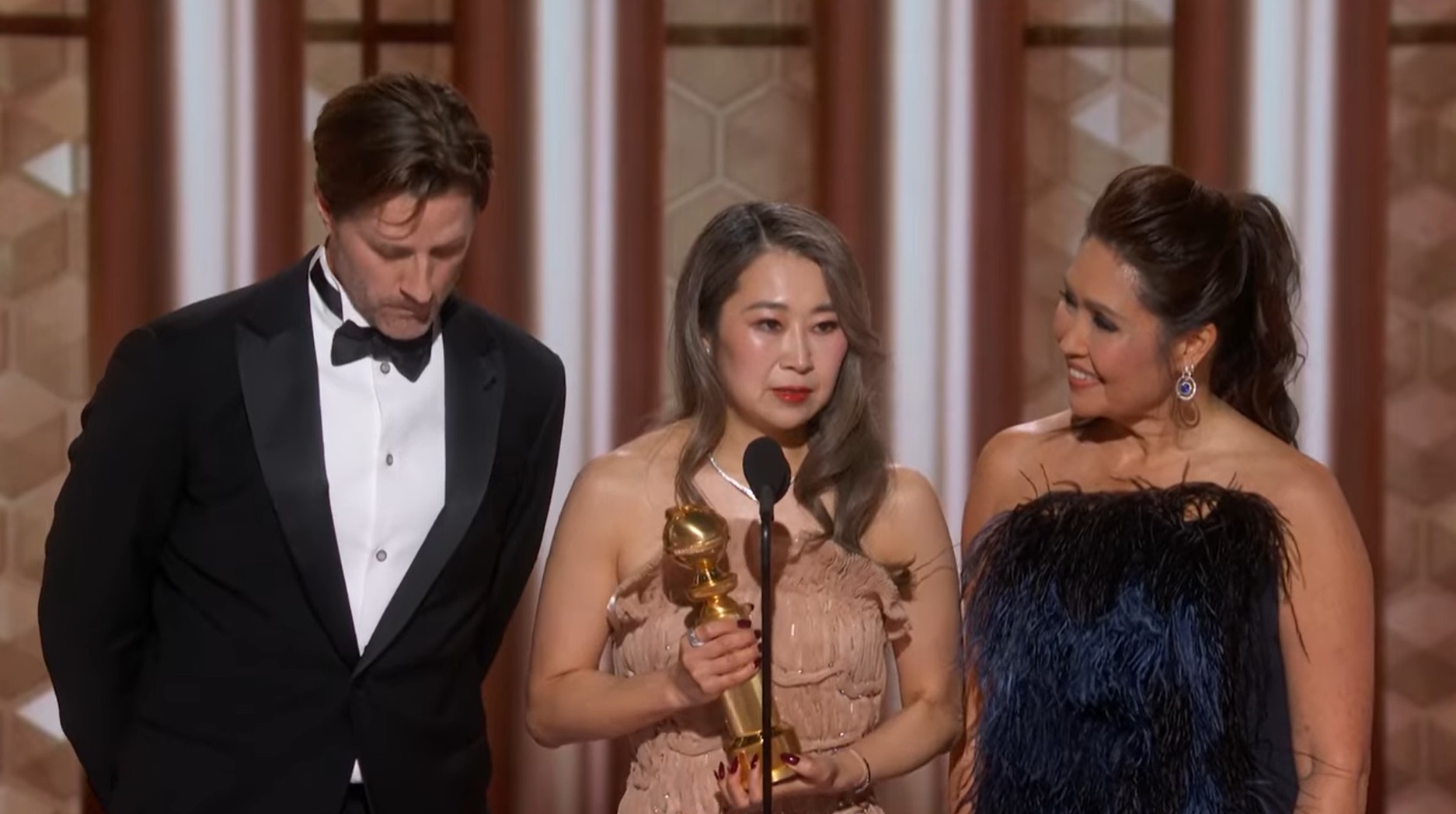 가수 겸 작곡가 이재가 시상대 위에 올랐다. "오 마이 갓. 이렇게 인크레이블한 영광을 선사한 골든글로브에 정말 감사드린다"고 고개를 숙였다.