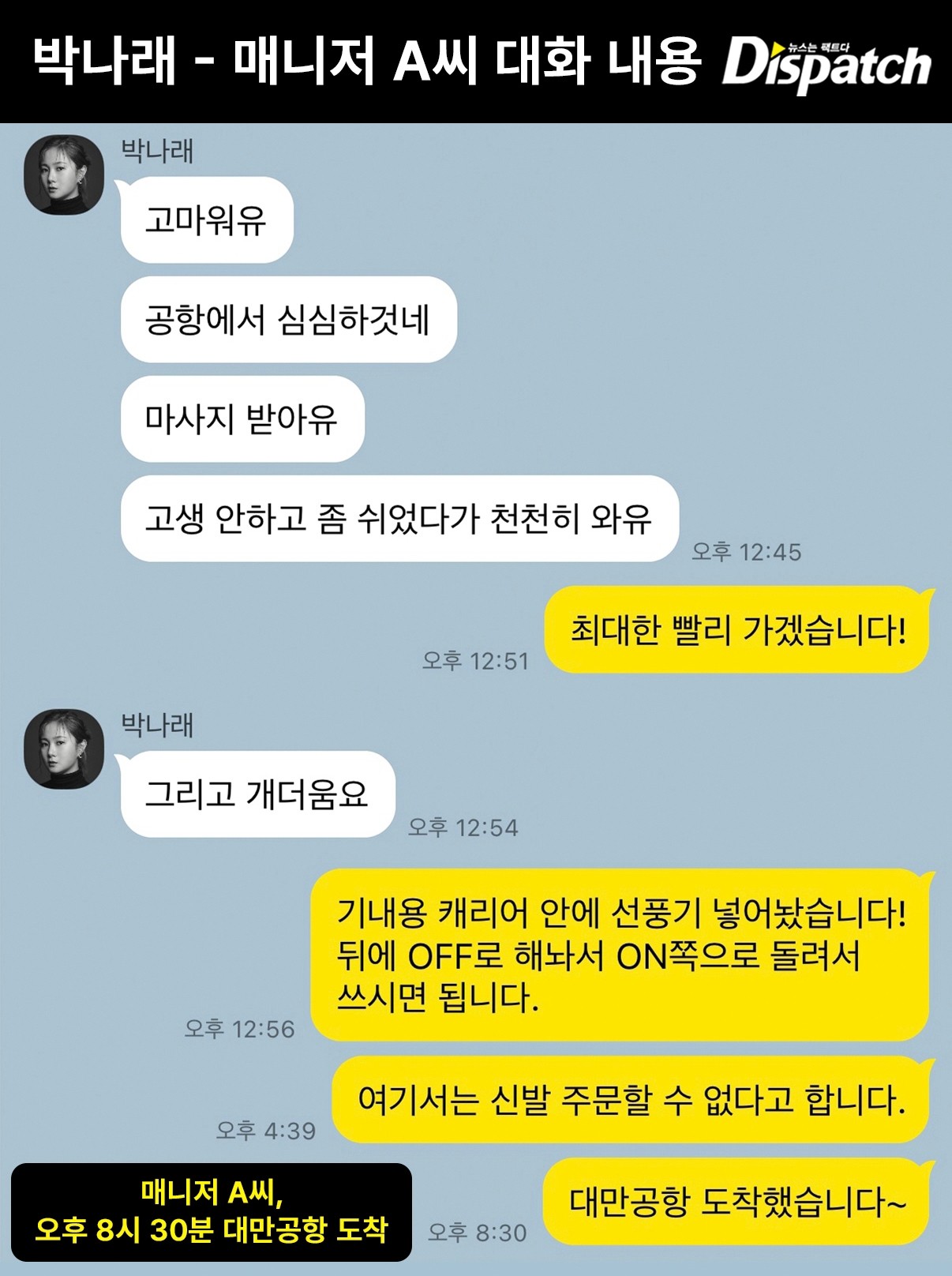 18. 박나래와 매니저 A씨가 나눈 카톡대화를 입수했다.