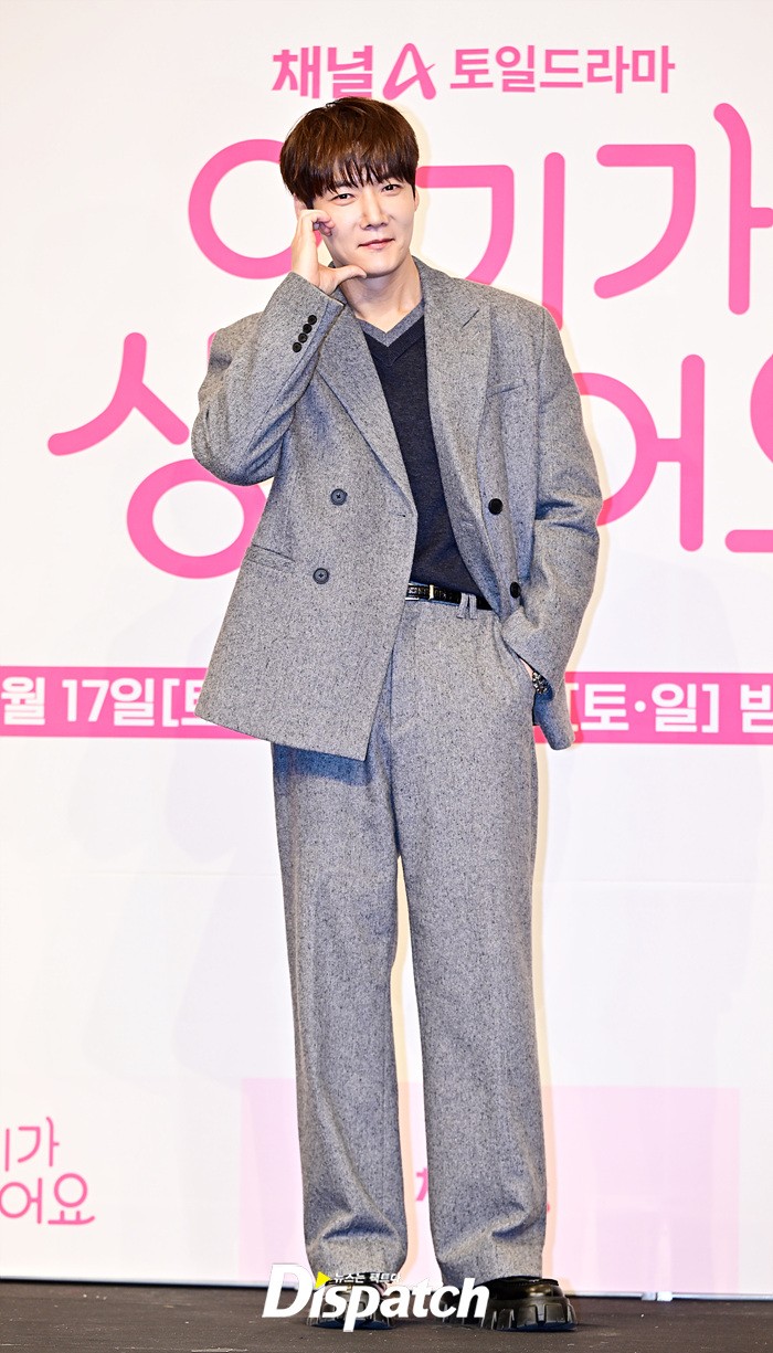 최진혁은 그레이 컬러의 수트로 댄디한 매력을 선보였다. 조각같은 비주얼과 스윗한 미소도 돋보였다.