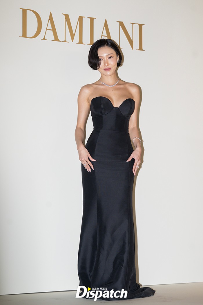 화사는 블랙 튜브톱 롱드레스로 아름다운 자태를 뽐냈다. 고혹적인 매력이 시선을 사로잡았다.