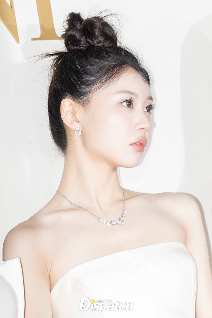 아일릿은 화이트 드레스로 순백의 자태를 뽐냈다. 모카는 인형같은 미모로 시선을 사로잡았다.