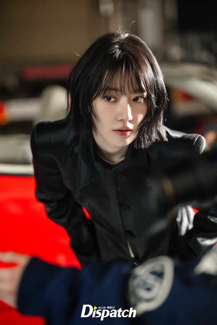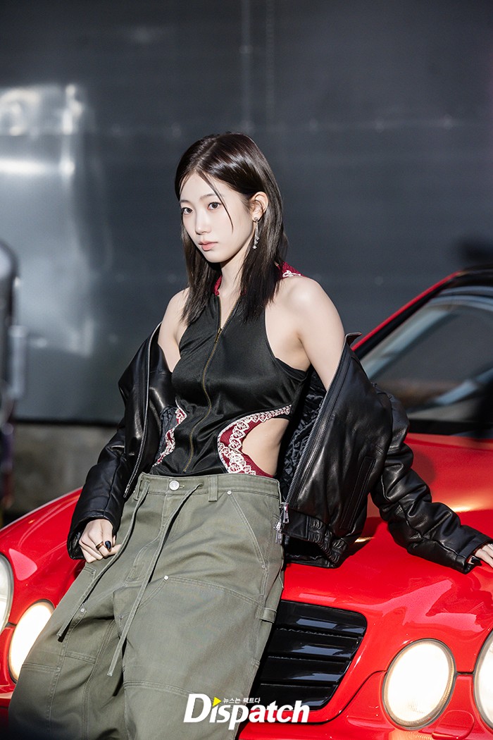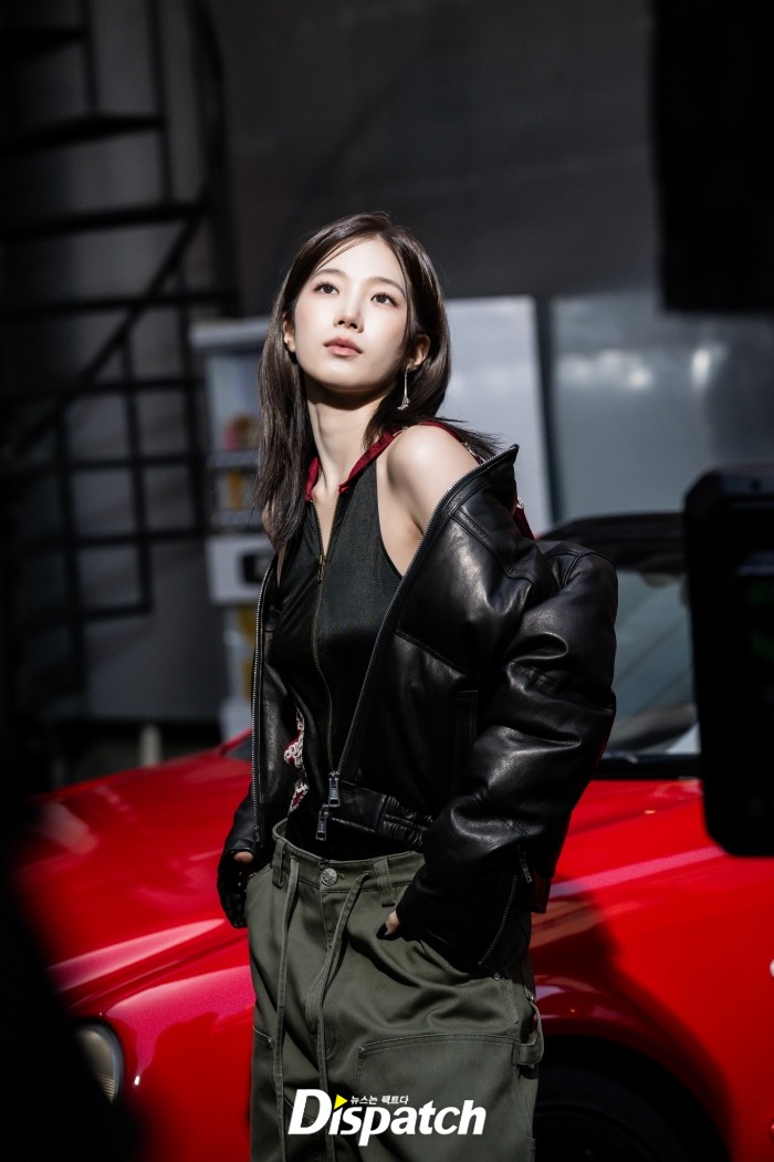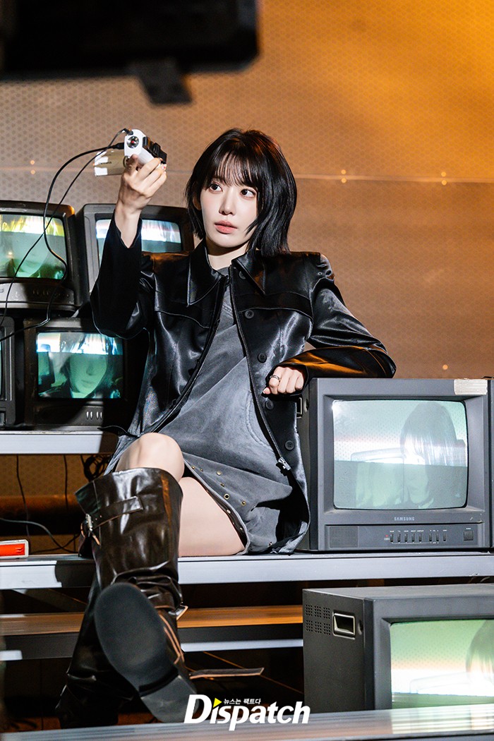 윤진은 걸어나오는 순간부터 티저 완성입니다. 검은 가죽재킷과 투스젬, 무테 안경까지. 콘셉트와 누구보다 잘 어울리는 멤버였습니다.