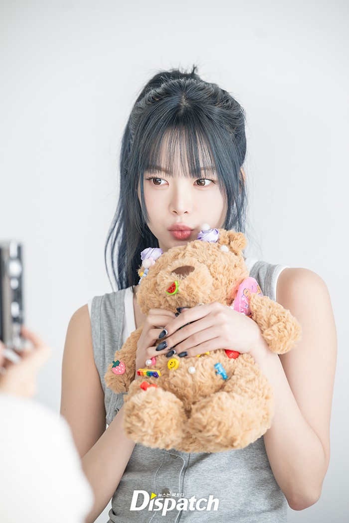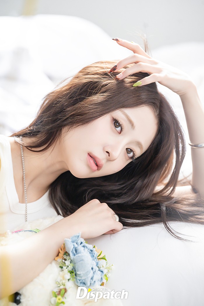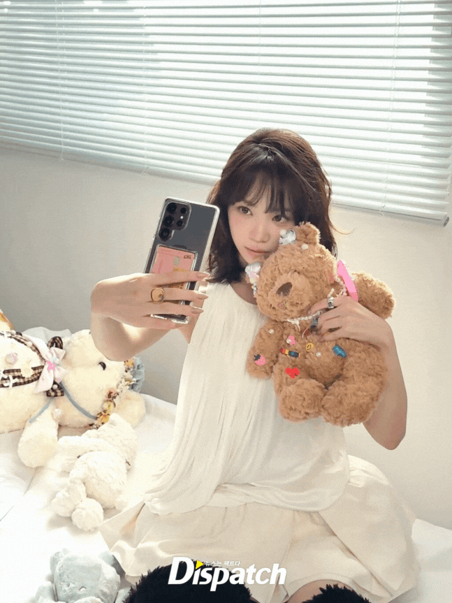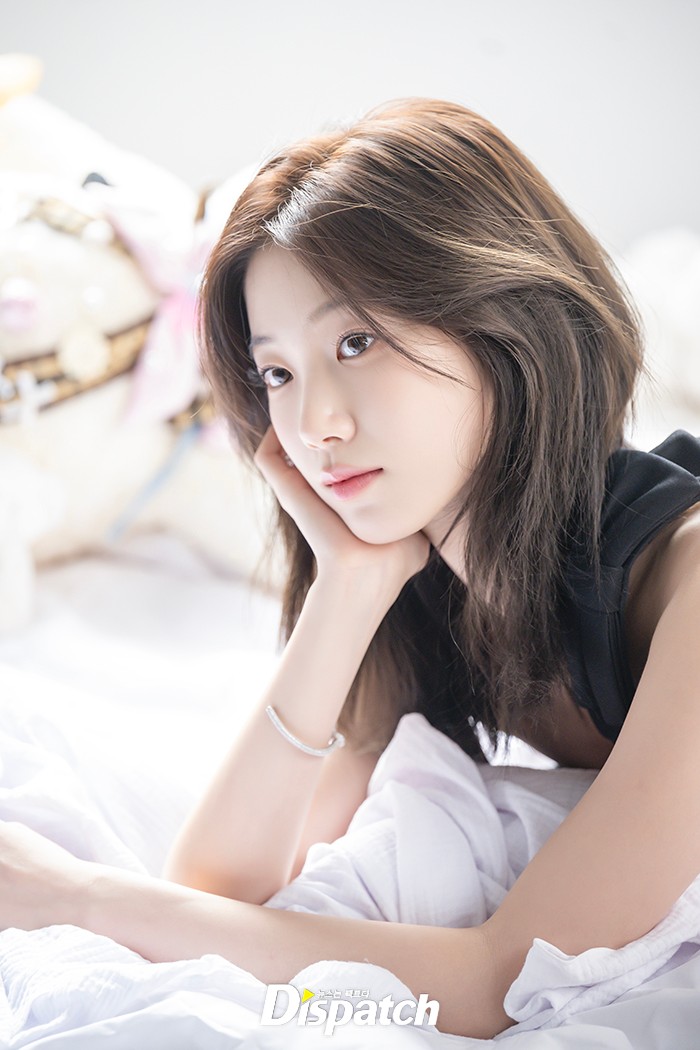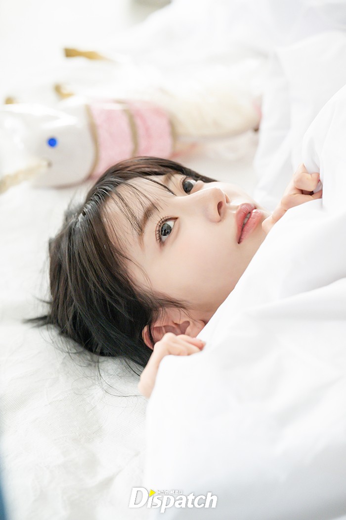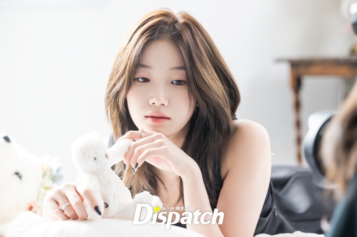 채원은 헝클어진 머리로 침대에 걸터앉았습니다. 이불에 얼굴을 파묻고, 곰인형과 장난을 쳤는데요. 어떤 연출이든 자연스럽게 포즈를 완성했습니다.