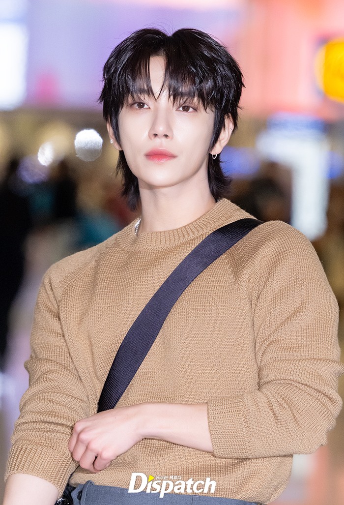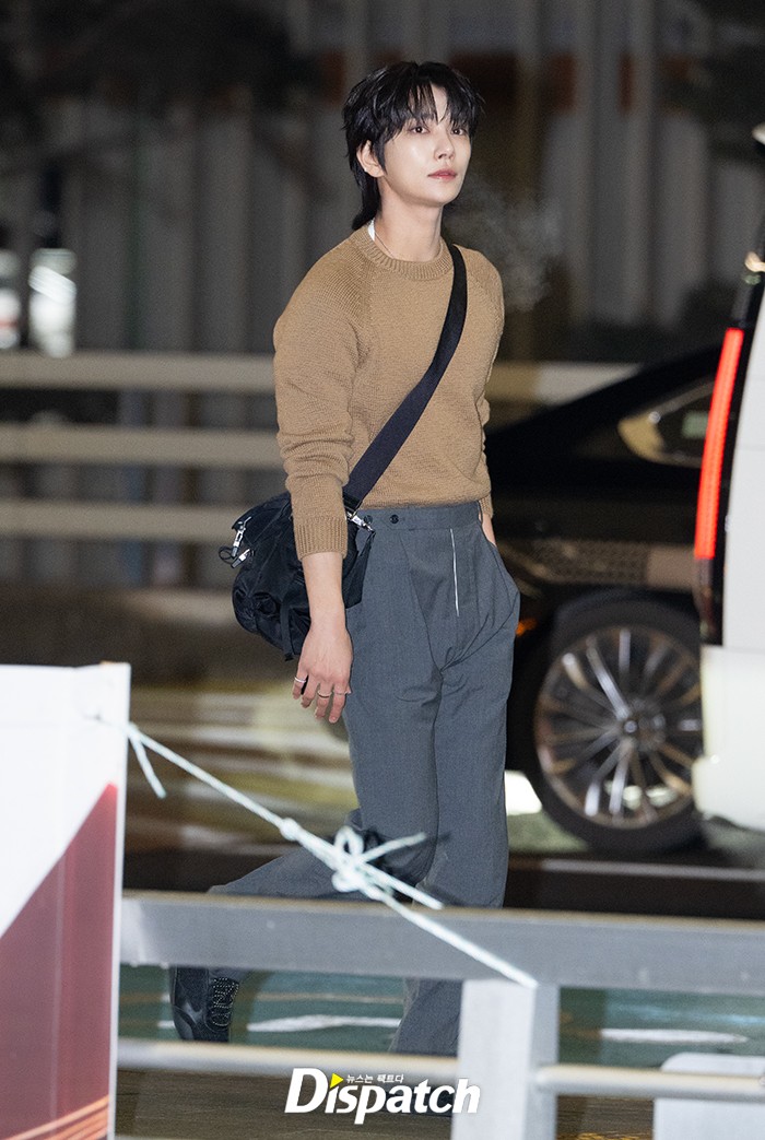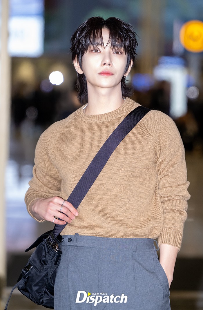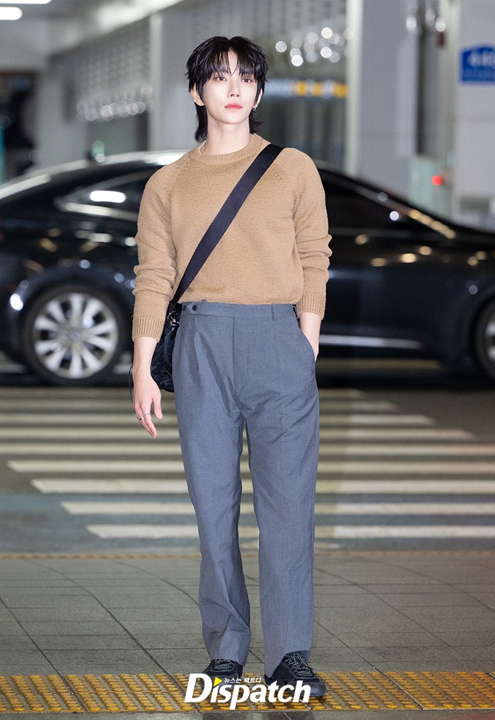 조슈아는 브라운 니트와 그레이 팬츠로 멋을 냈다. 멋진 비주얼로 공항을 빛냈다.