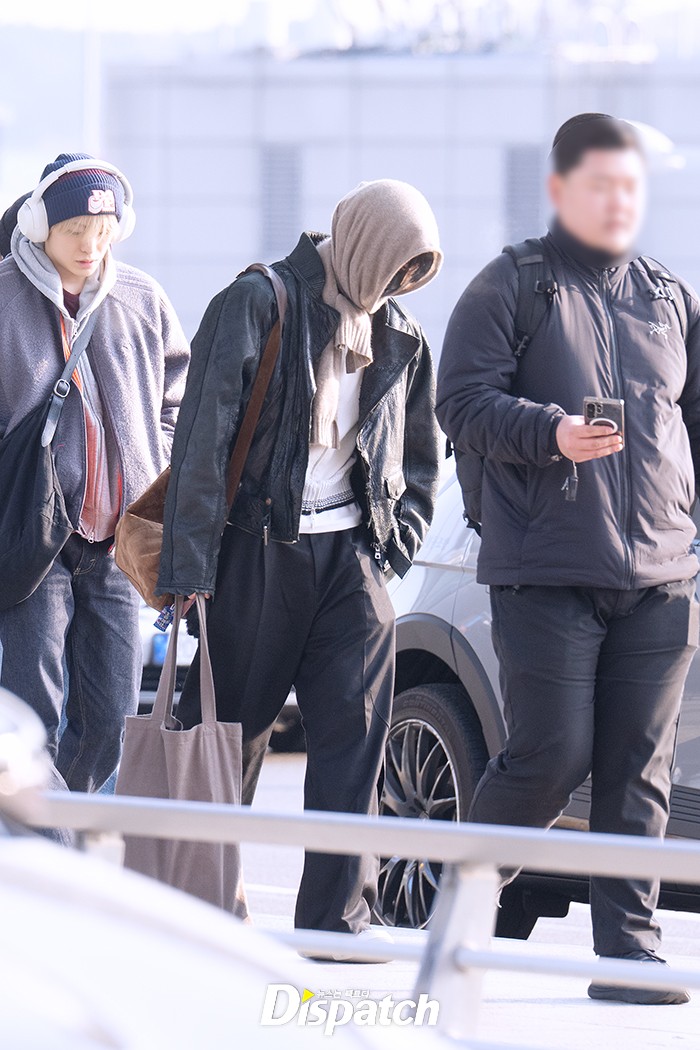 시온은 블랙 팬츠에 레더 재킷으로 시크한 공항패션을 연출했다. 훈훈한 비주얼이 돋보였다.