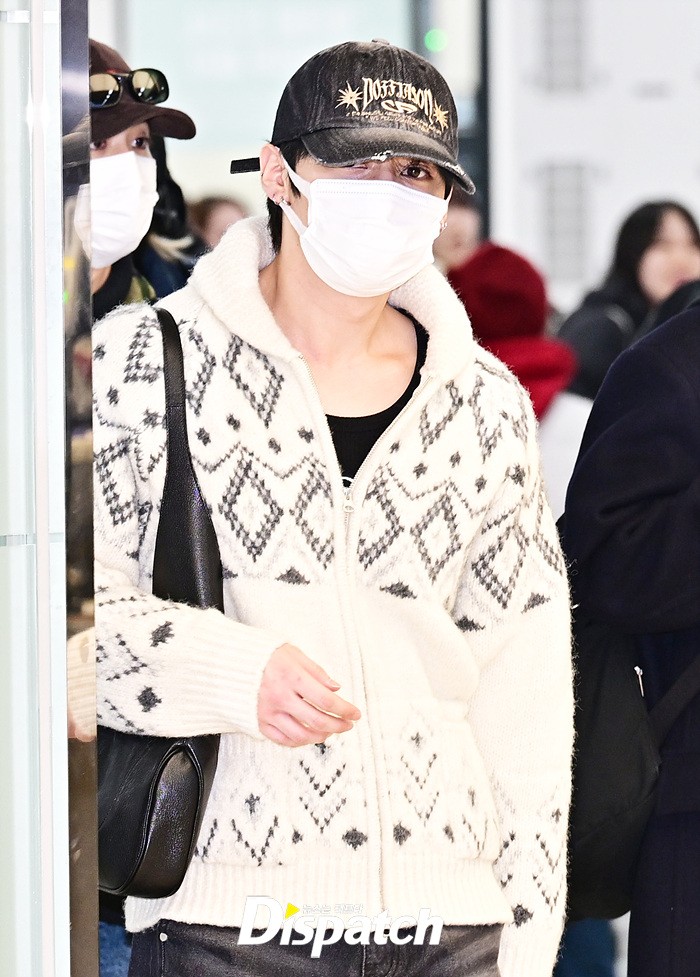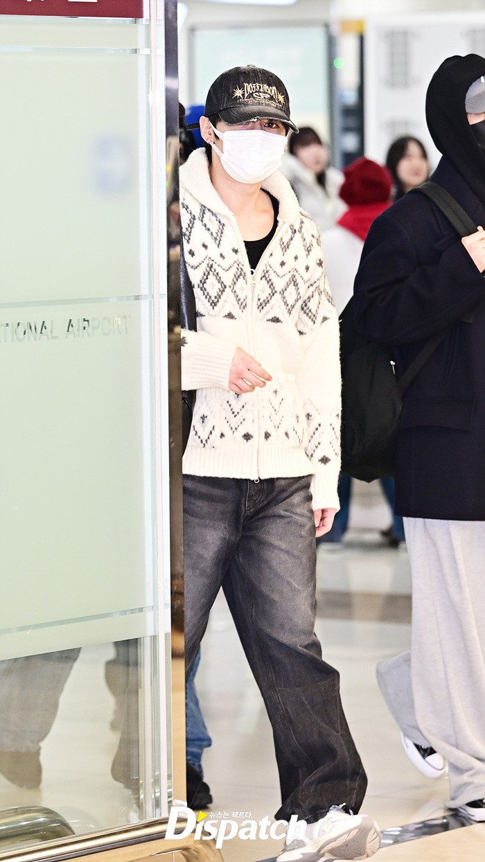 리노는 훈훈한 비주얼로 눈길을 끌었다. 모자와 마스크에도 강렬한 눈빛으로 입국장을 나섰다.