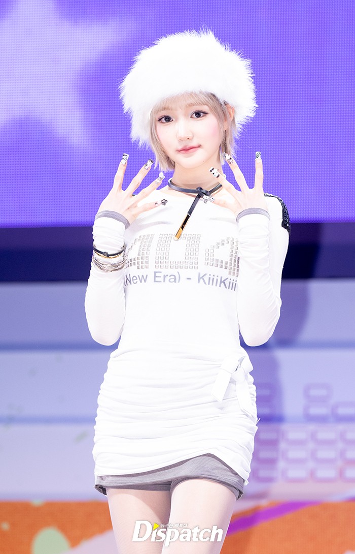 지유는 밀착 화이트 원피스로 맵시를 뽐냈다. 만화에서 나온듯한 미모로 남심을 사로잡았다.