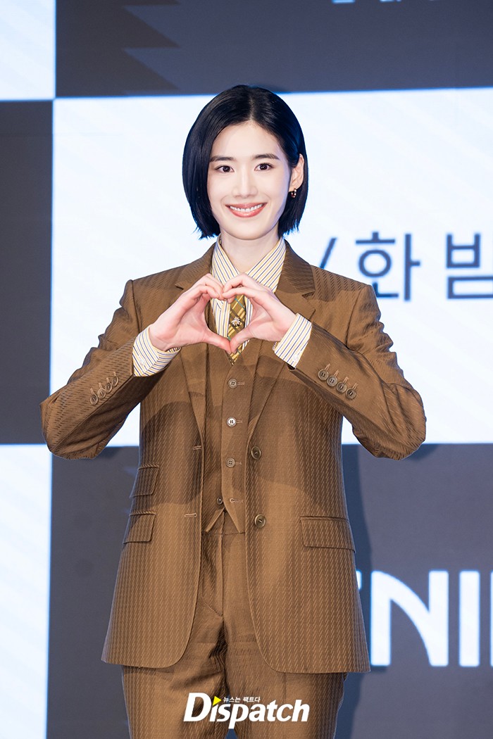 정은채는 브라운 수트로 매니시룩을 뽐냈다. 큰 키와 아름다운 미모로 시선을 사로잡았다.