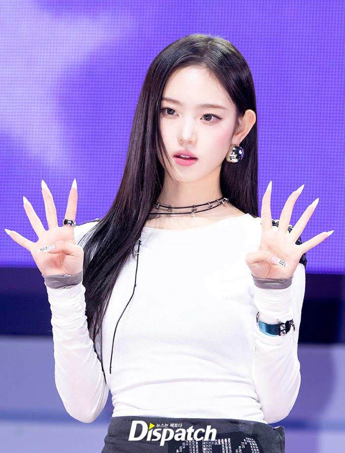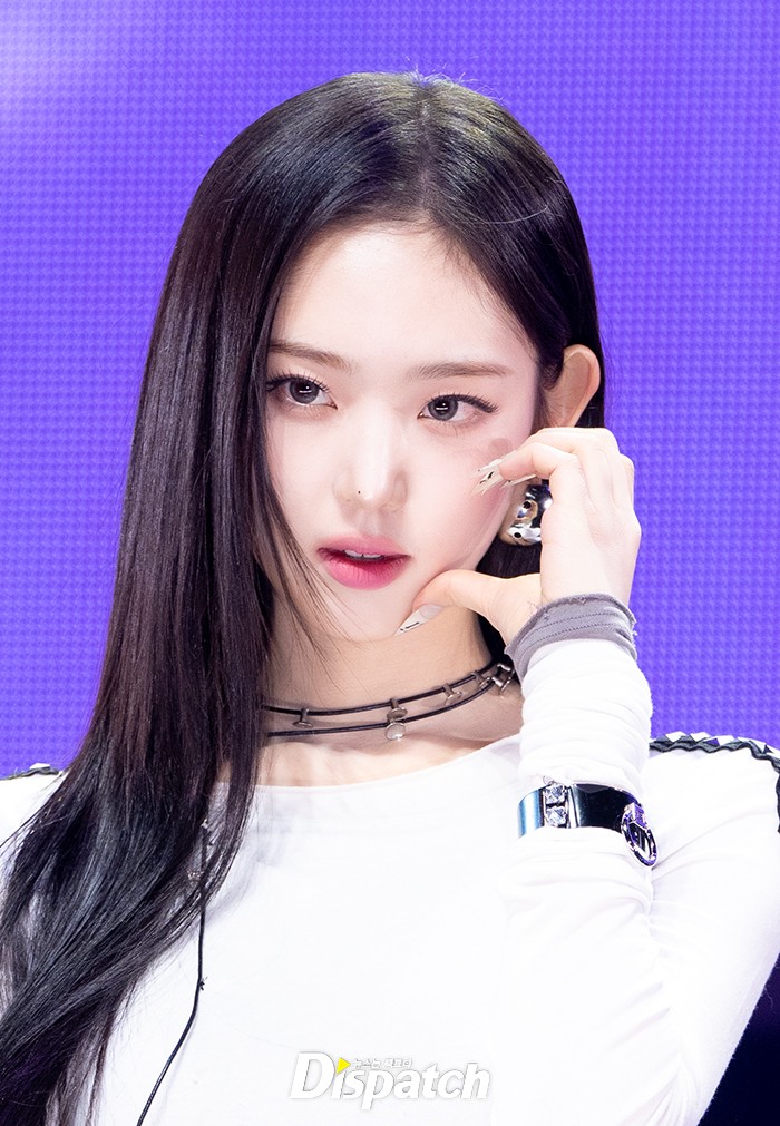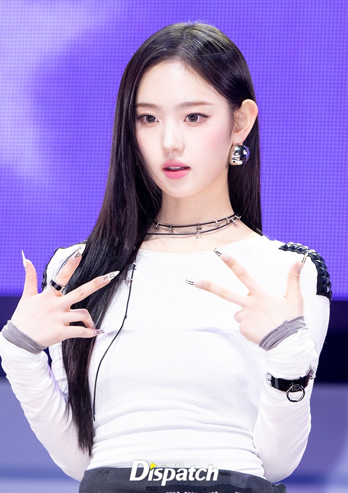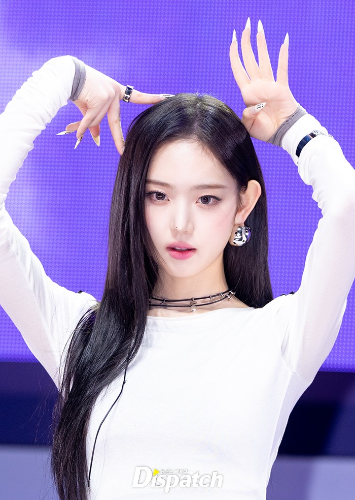 이솔은 화이트 티셔츠에 블랙 미니스커트로 맵시를 뽐냈다. 인형 같은 미모로 남심을 사로잡았다.