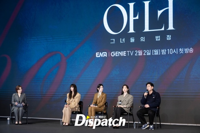 ENA 새 월화 드라마 '아너: 그녀들의 법정' 측이 26일 서울 구로구 신도림동 더세인트 그랜드볼룸에서 제작발표회를 열었다. 박건호 감독, 이나영, 정은채, 이청아 등이 참석했다.