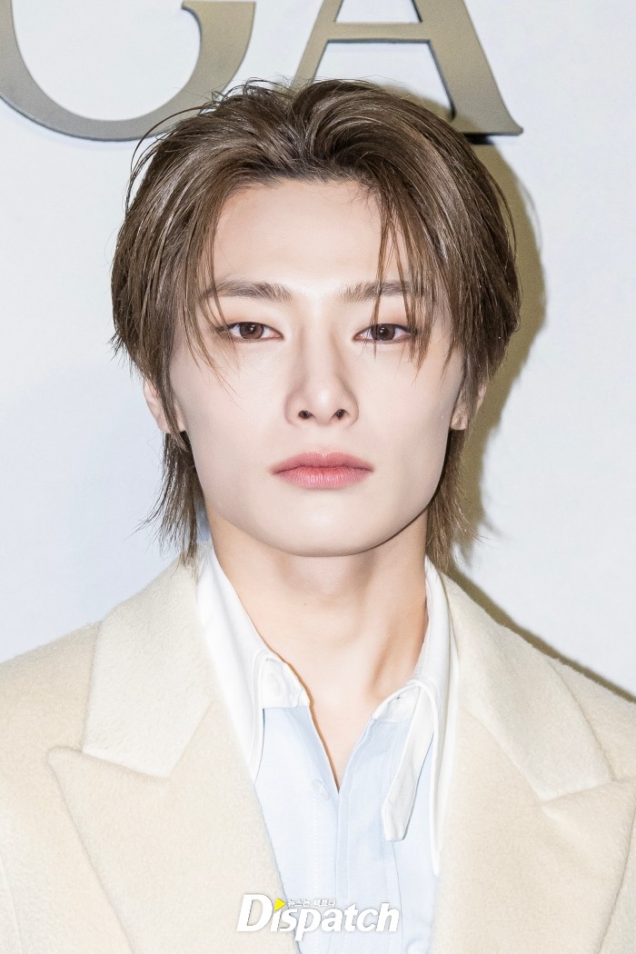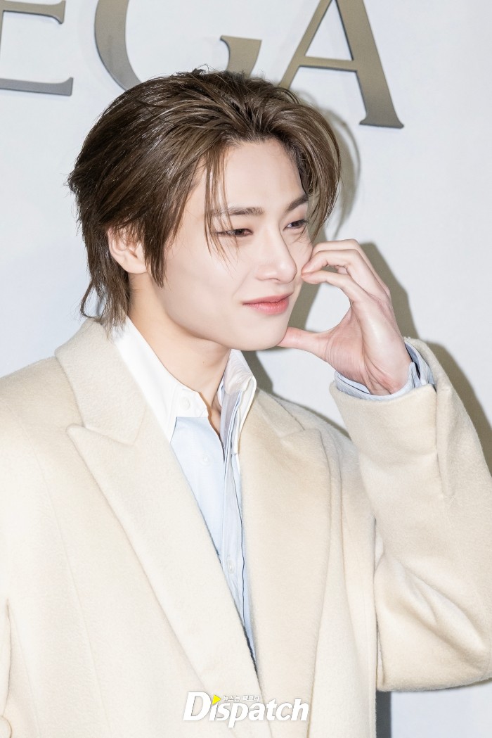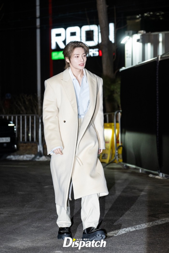 아이엔은 블루 셔츠와 아이보리 롱코트로 멋을 냈다. 잘생긴 비주얼이 돋보였다.