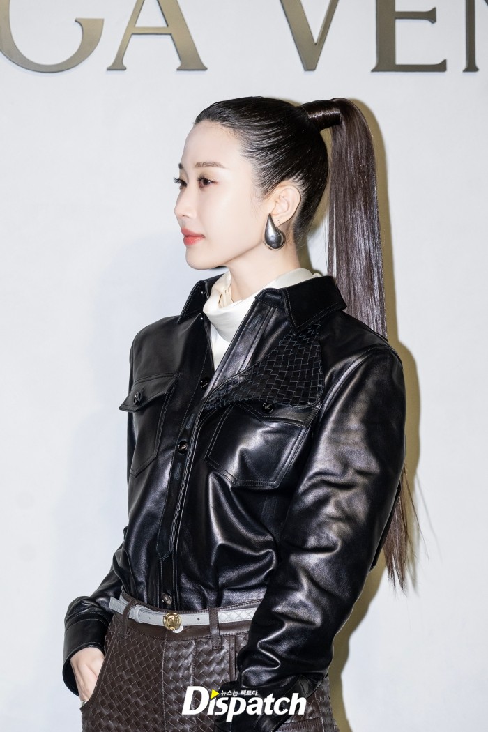 문가영은 레더 재킷과 팬츠로 시크한 분위기를 완성했다.