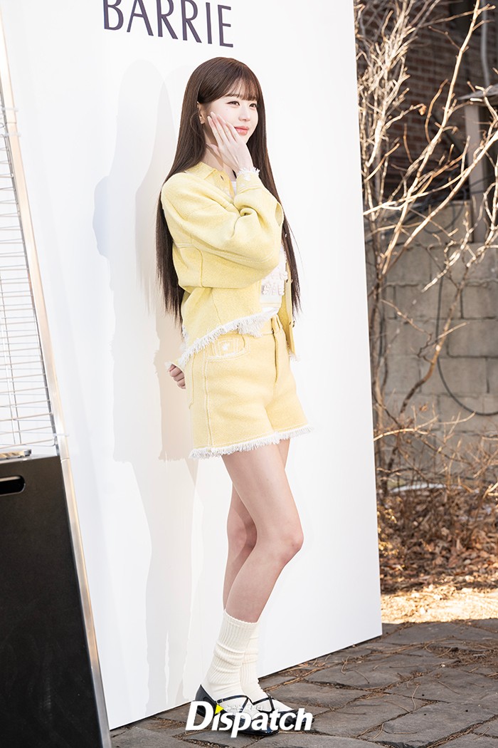 장원영은 옐로우 셋업 의상으로 화사한 분위기를 연출했다. 인형같은 미모가 시선을 사로잡았다.