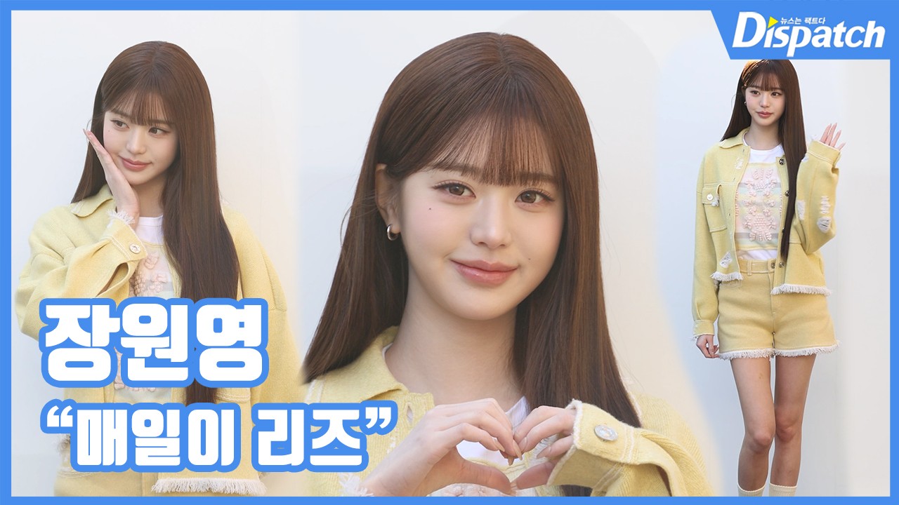 이날 장원영은 옐로우 셋업 의상으로 화사한 봄날 룩을 연출했다.