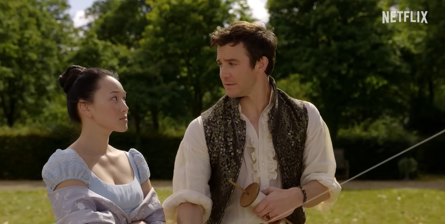 넷플릭스는 29일 '브리저튼 4' 파트1을 공개한다. 이번 시즌 주인공은 브리저튼 가문의 2째 아들 베네딕트(루크 톰슨 분)로 소피 백(하예린 분)과의 러브 스토리를 다룬다.