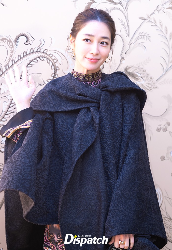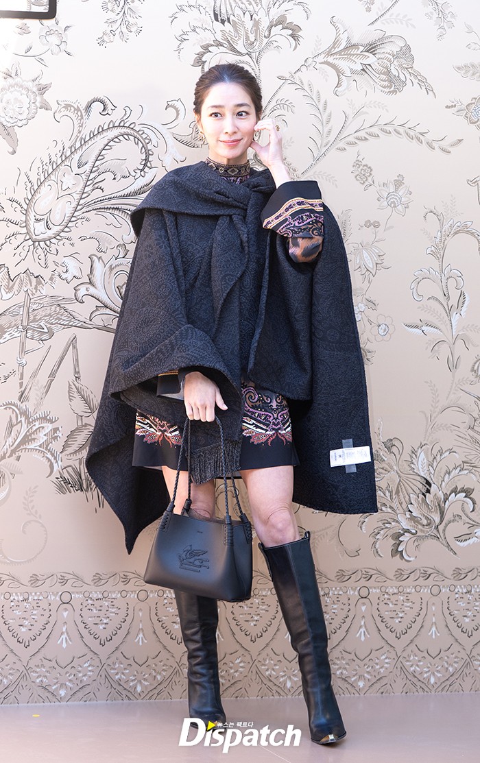 이민정은 화려한 원피스와 블랙 코트로 멋진 맵시를 뽐냈다. 아름다운 미모가 돋보였다.