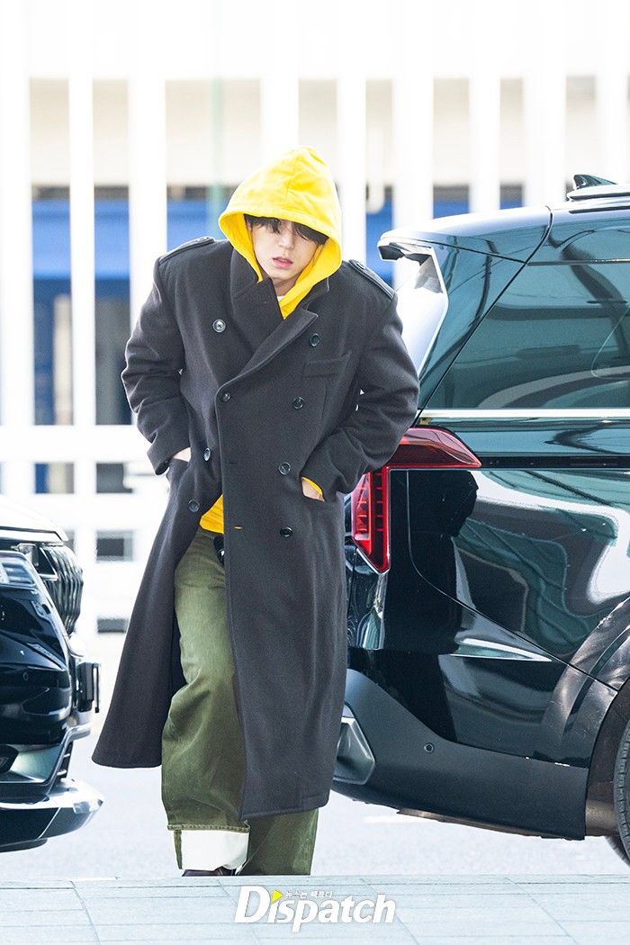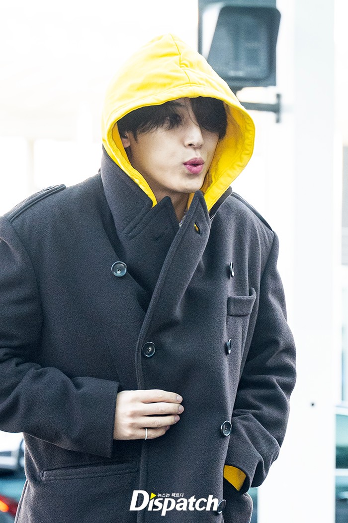 민규는 블랙 롱코트로 멋을 냈다. 잘생긴 비주얼이 돋보였다.