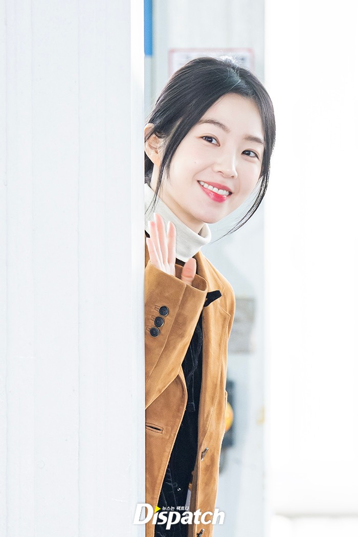 아이린은 스웨이드 재킷과 레더 스커트로 멋을 냈다. 사랑스런 미소로 팬들에게 인사를 건넸다.